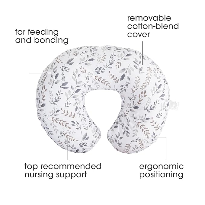 Boppy Original Nursing Pillow, Gray Taupe Leaves, Ergonomic Nursing Essentials for Bottle and Breastfeeding