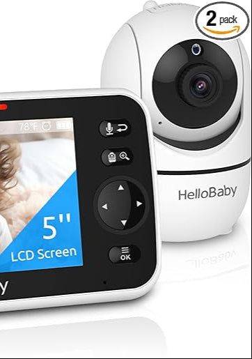 HelloBaby No WiFi Baby Monitor 5" Screen 30-Hour Battery Pan-Tilt-Zoom Video Upgrade with Camera and Audio, Night Vision, VOX, 2-Way Talk, 8 Lullabies and 1000ft Range