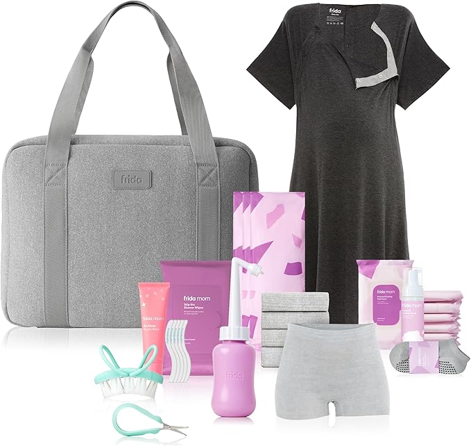 Frida Mom 30pc Pre-Packed Hospital & Diaper Bag Essentials Gift Set, Includes Labor, Postpartum, & Newborn Grooming Kit in One, Easy to Organize with Removable Toiletry Bags, & Suitcase Strap