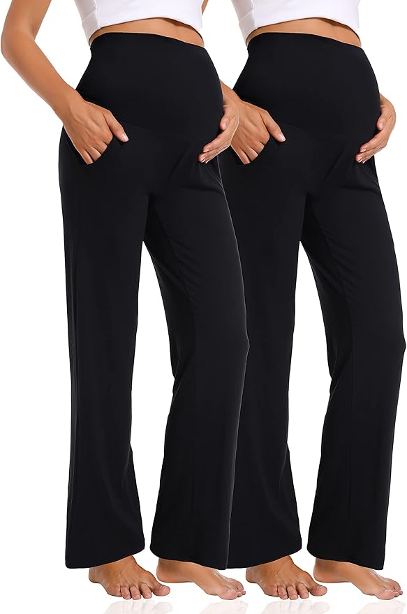 Foucome Women's Maternity Pants Casual Loose Wide Leg Cozy Pant Pregnancy Palazzo Lounge Trousers with Pockets